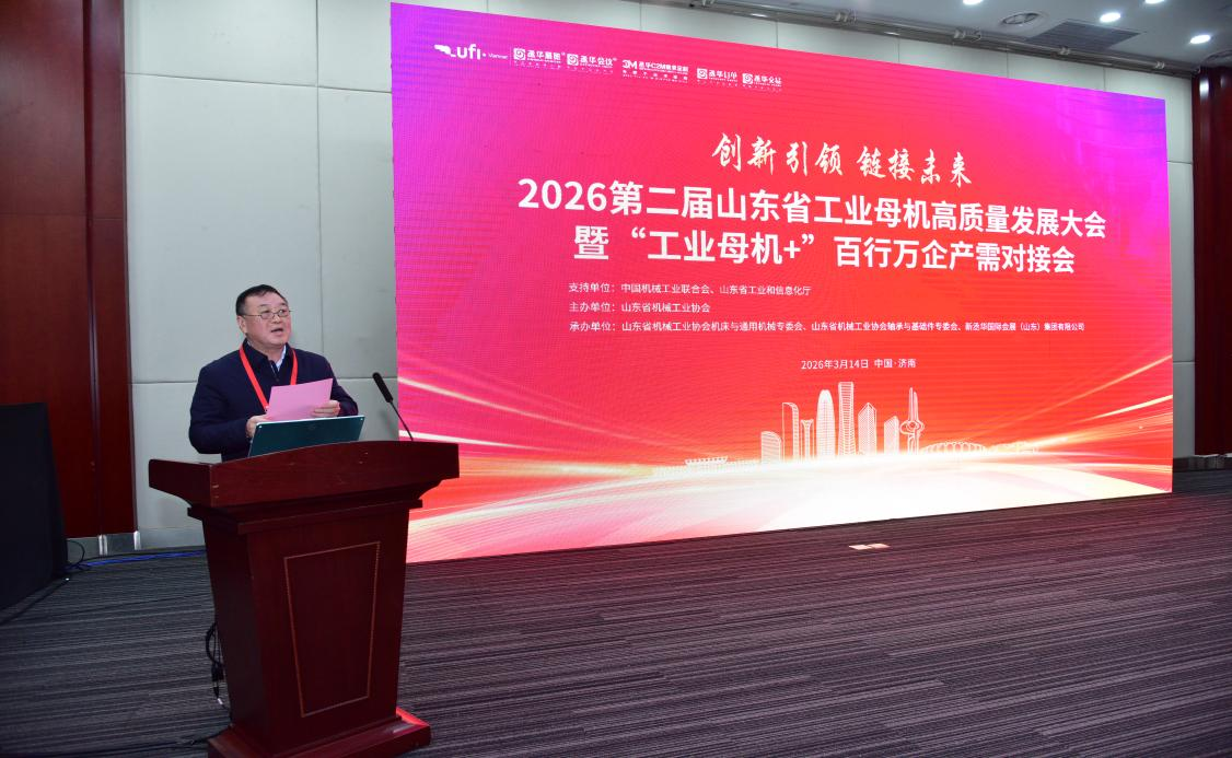 2026年3月14日,2026第二届山东省工业母机高质量发展大会暨“工业母机+”百行万企产需对接会在济南山东国际会展中心隆重开幕。本次大会由中国机械工业联合会、山东省工业和信息化厅支持,山东省机械工业协会主办,山东省机械工业协会机床与通用机械专委会、山东省机械工业协会轴承与基础件专委会、新丞华国际会展(山东)集团有限公司联合承办,与2026第二十一届中国(山东)国际装备制造业博览会、2026第21届济南国际数控机床展览会同期联动,大会以“创新引领链接未来”为主题,聚焦工业母机产业技术创新与产需融通,汇聚了行业顶尖专家和企业代表,为山东省工业母机高质量发展注入了新动能。