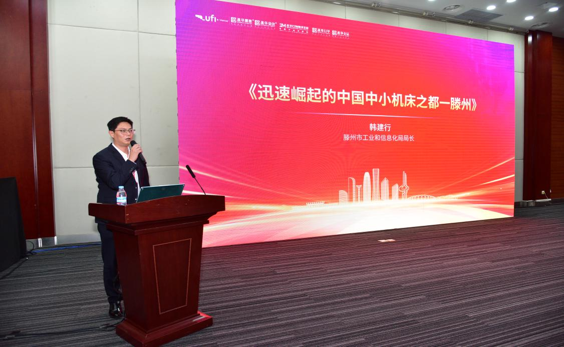 滕州市工业和信息化局党组书记、局长韩建行作《迅速崛起的中国中小机床之都—滕州》报告,介绍滕州中小机床产业的发展优势、产业生态与发展规划,展现地方特色产业集群的发展活力。