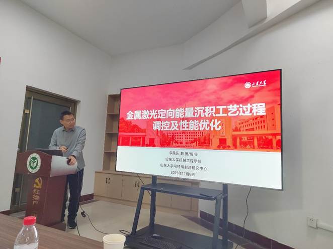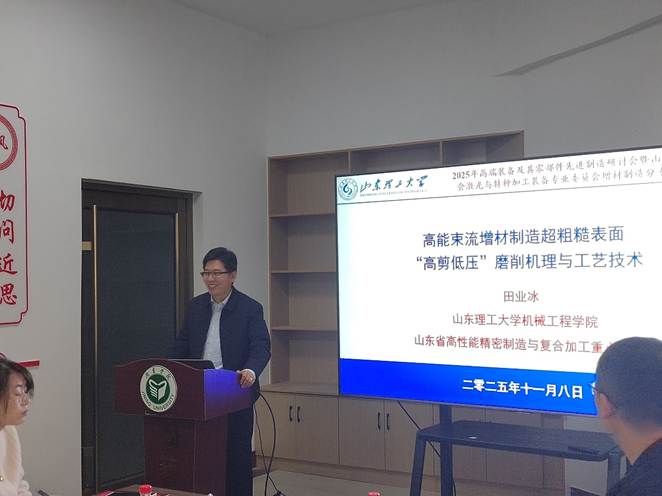 成立仪式结束后,大会进入学术研讨环节。多位行业顶尖专家学者带来了精彩纷呈的专题报告:山东理工大学田业冰教授深入解析《高能束流增材制造超粗糙表面“高剪低压”磨削机理与工艺技术》;山东大学张松教授聚焦《数控机床空间几何误差建模与补偿》分享研究成果;齐鲁工业大学王燕霜教授阐述《风机主轴承力学性能分析及结构优化设计研究》;山东大学李燕乐教授探讨《金属激光定向能量沉积工艺过程调控及性能优化》;山东新能船业有限公司副总经理王庆虎博士介绍《新能船业“新”在何处》。