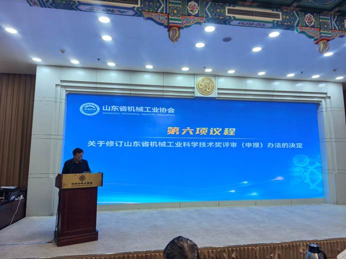王守仁会长作协会2025年工作报告及财务报告,复盘履职成效并明确“十五五”开局发展路径,并对协会内部机构改革作了说明,协会标准化工作部部长、山东省机械工业标准化工作委员会主任王艾泉对山东省机械工业科学技术奖奖励新旧办法作了修订说明,会议由副会长兼秘书长任彦领主持。